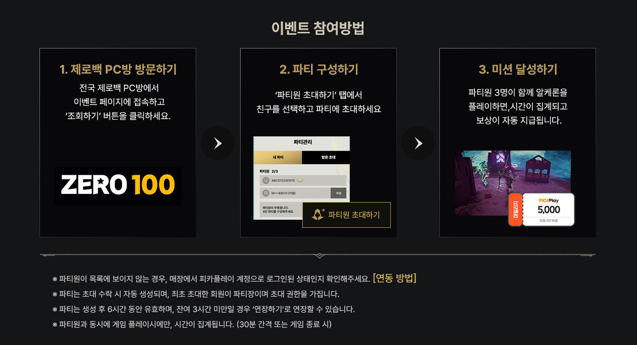 파티를 구성하고 마일리지 보상을 수령하세요!
